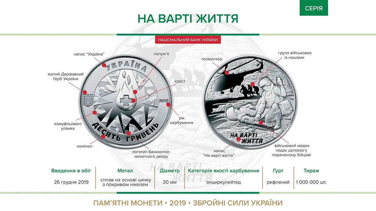 Пам'ятна монета "На варті життя" вводиться в обіг з 26 грудня 2019 року