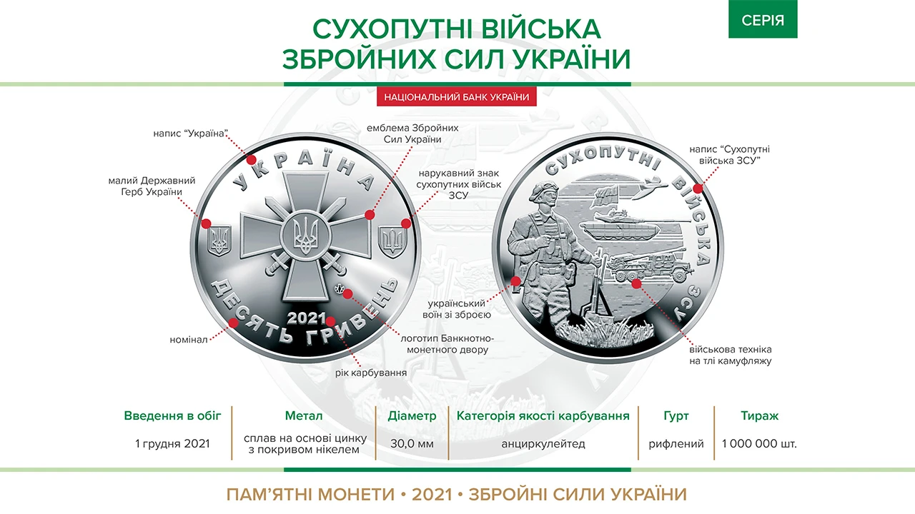 Пам’ятна монета "Сухопутні війська Збройних Сил України" вводиться в обіг із 01 грудня 2021 року