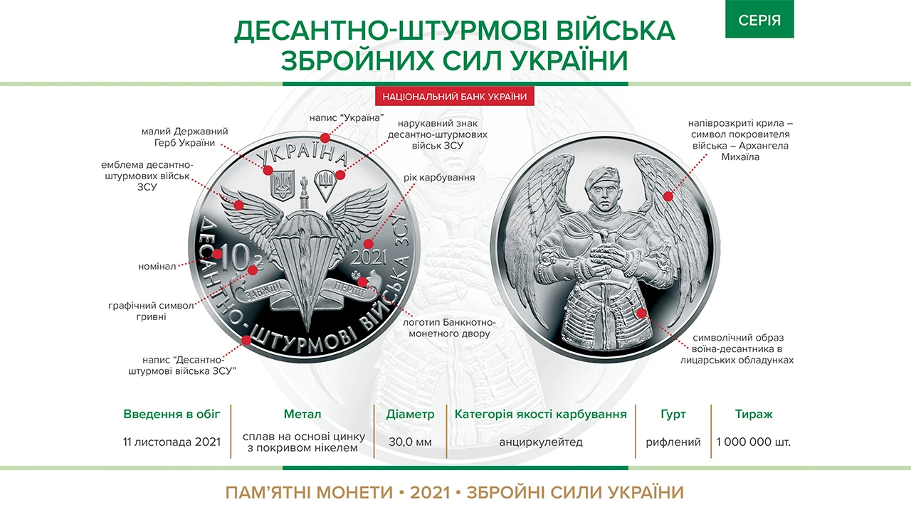 Пам’ятна монета "Десантно-штурмові війська Збройних Сил України" вводиться в обіг із 11 листопада 2021 року