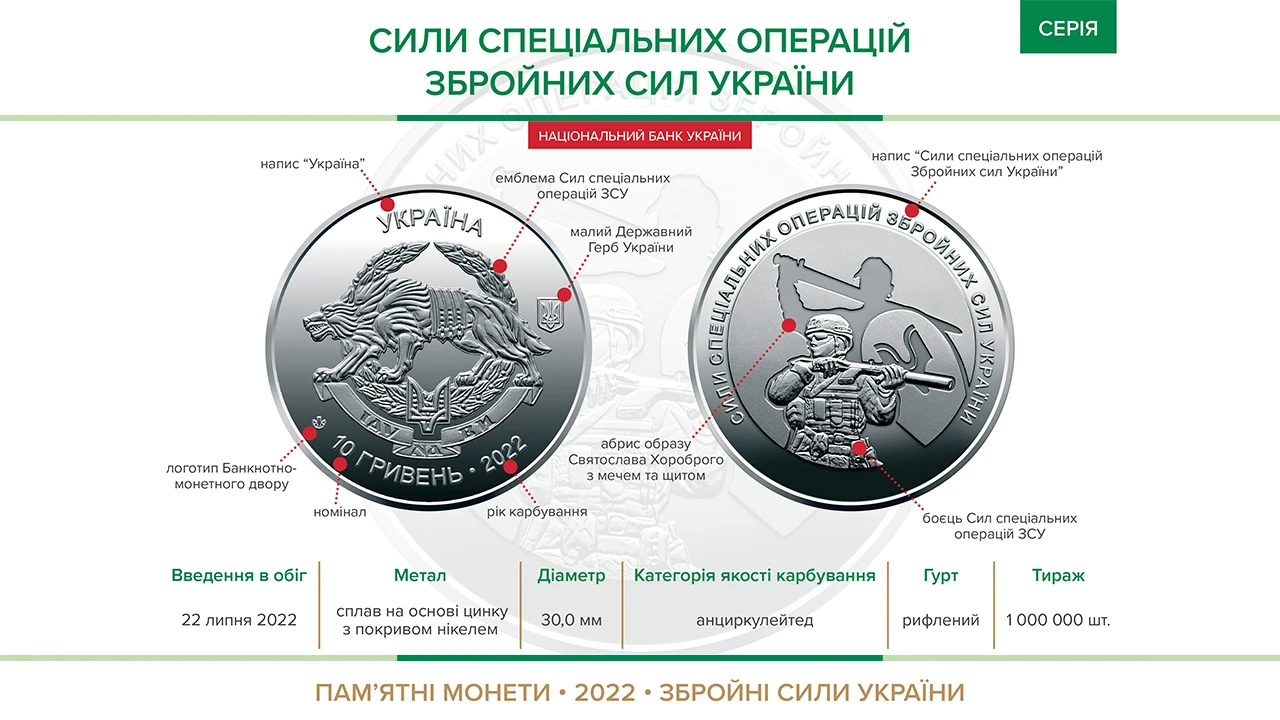 Пам’ятна монета "Сили спеціальних операцій Збройних Сил України" уведена в обіг із 22 липня 2022 року